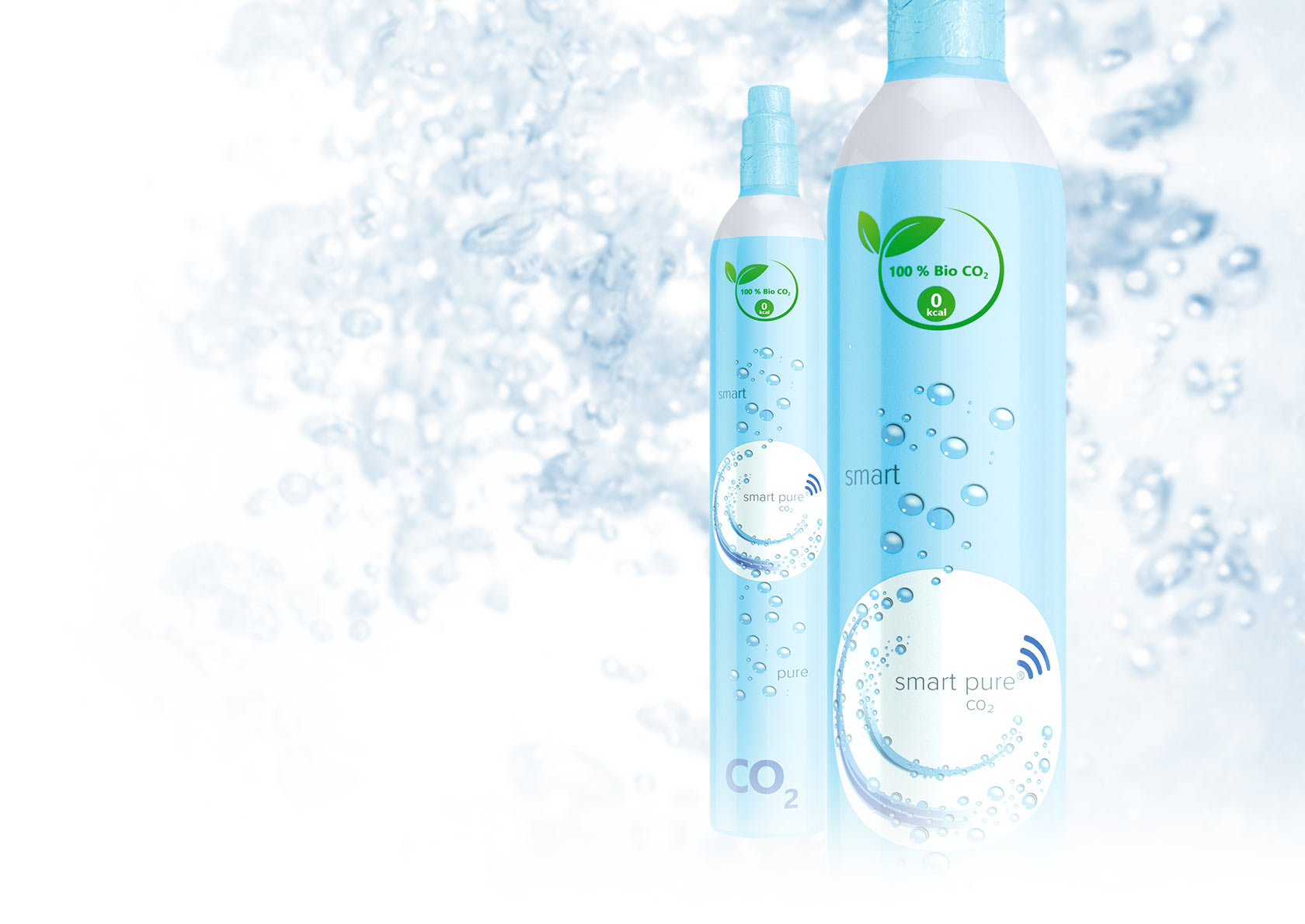 Med våre Smart Pure® CO₂-flasker kan du alltid nyte friskt, rent og perlende vann med kullsyre. Én flaske på 425 g er nok til opptil 75 liter kullsyrevann. Smart Pure®-flaskene produseres i Tyskland etter de høyeste kvalitetsstandardene og er fri for oljebaserte produksjonsrester. Dette sikrer en behagelig, naturlig og ren smak. Emballasjen er laget av 100 % resirkulert materiale og er egnet for flere forsendelsessykluser.
